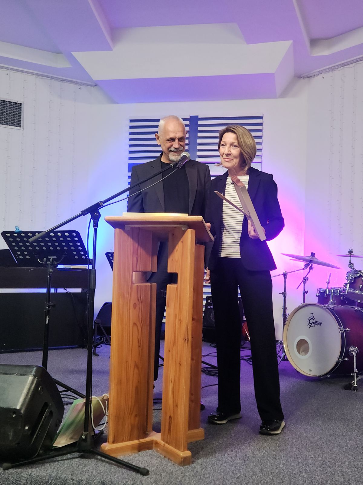 Rijeka, 19. listopada 2025. (IBA) - U sklopu svečanog bogoslužja povodom Dana zahvalnosti održanog u BC Rijeka, izražena je zahvalnost Mirjani Grce, novinarki Novoga Lista za višegodišnju suradnju i ton-majstoru Lorinu Zoviću.